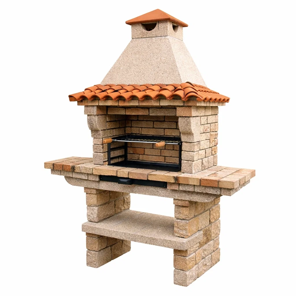 Barbecue in pietra e mattone con tegole in terracotta
