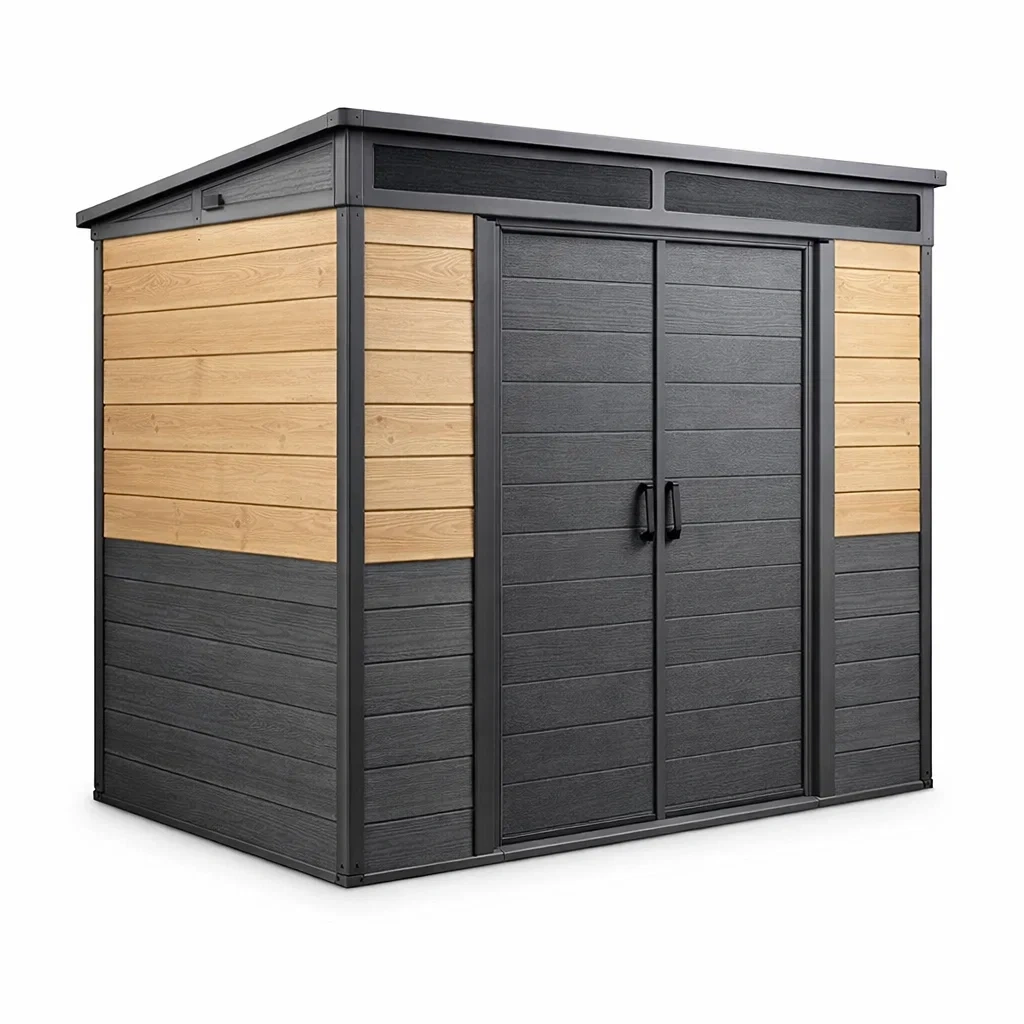 Casetta da giardino in plastica grigio scuro e grigio chiaro