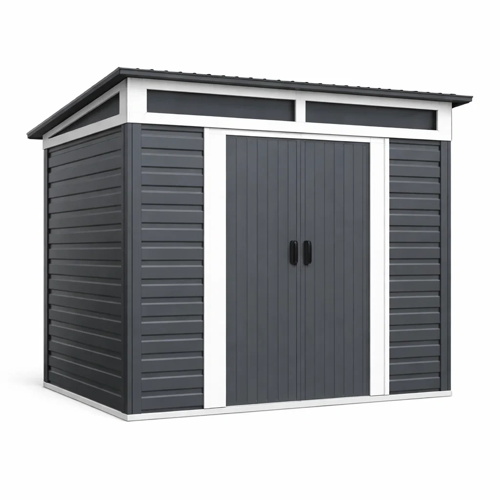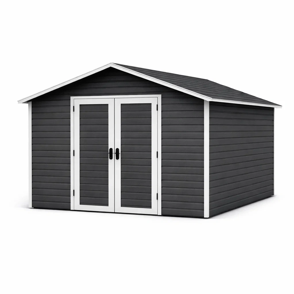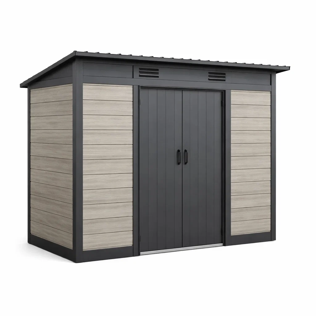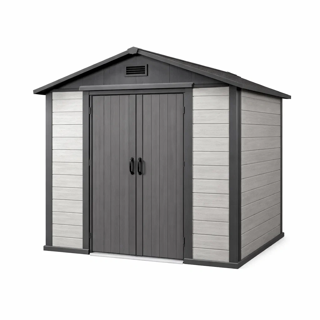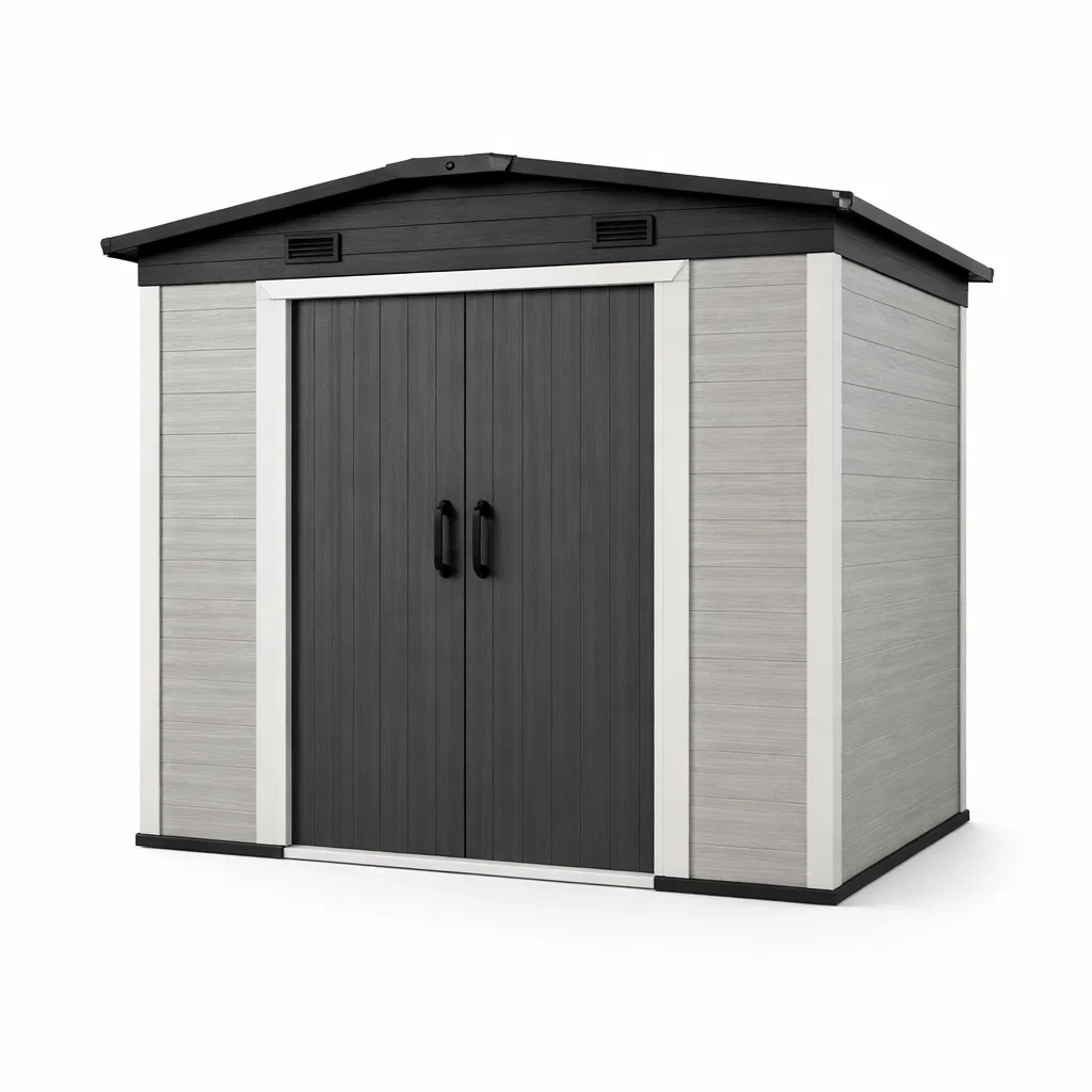 Casetta da giardino in plastica grigio antracite con doppia porta