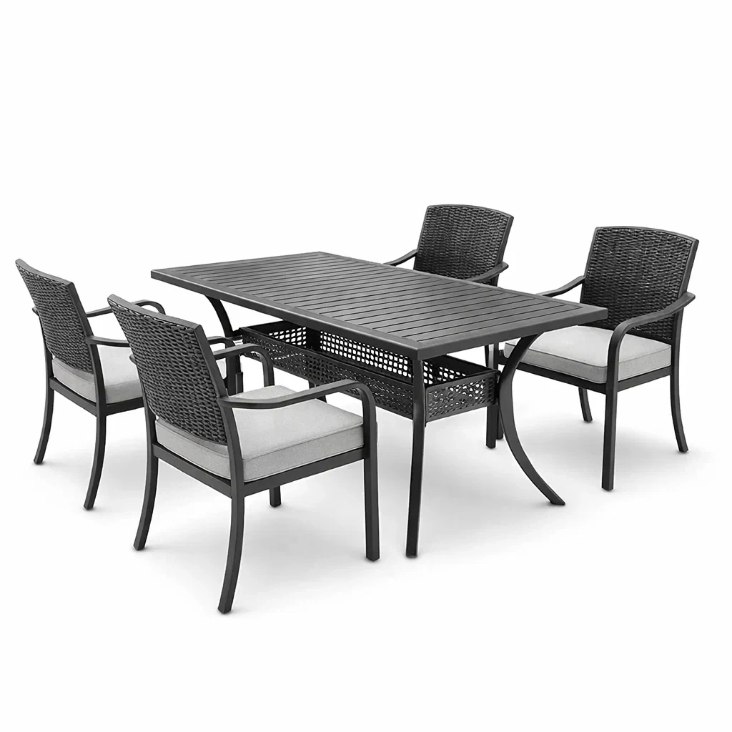 Prodotti inclusi: 1 tavolo rettangolare, 4 sedie, cuscini per sedie.