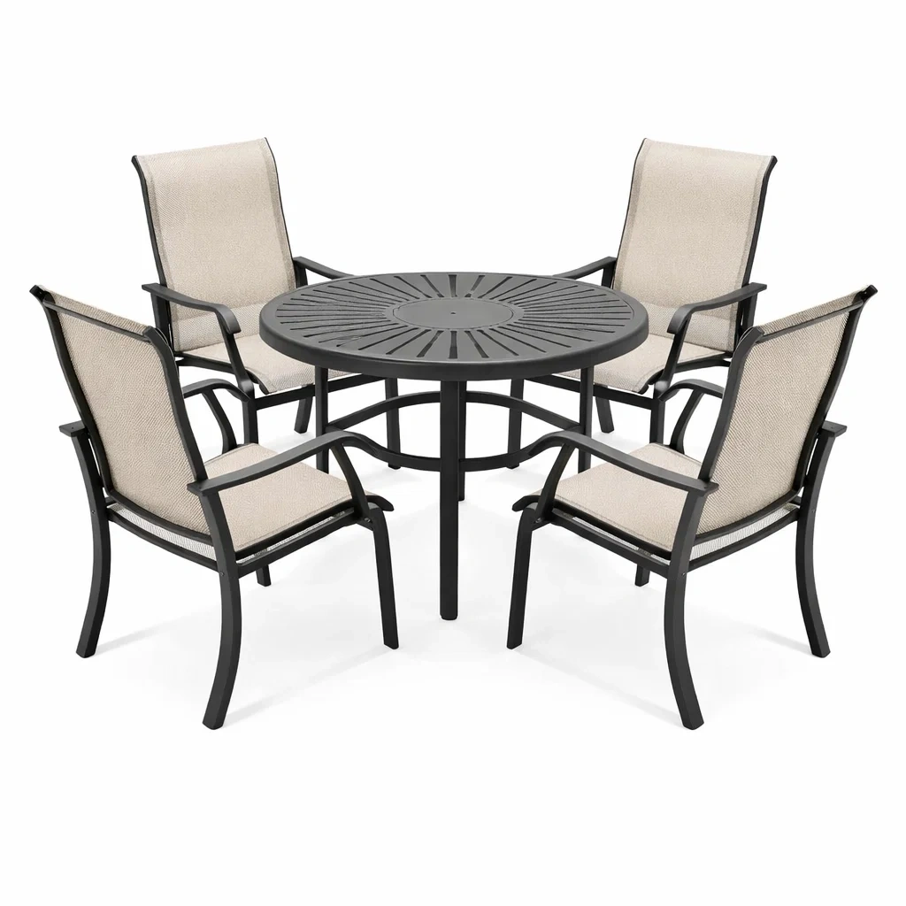 - Contenuto: 1 tavolo rotondo, 4 sedie
